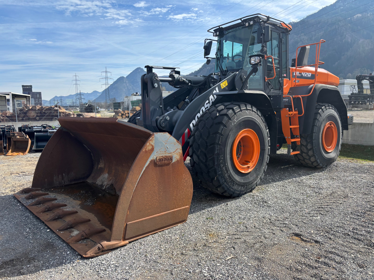 | Beschreibung | Radlader Doosan-Develon, Motor mit 240 kw, Zusatzgegengewicht (300 kg), Breite 3000 mm, Ladeschaufel 3200 mm 4,4 m3. |