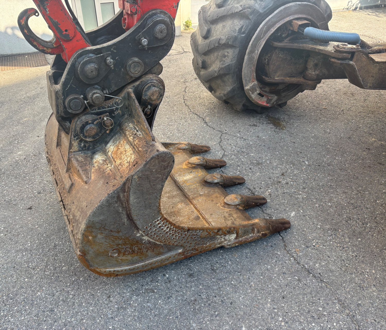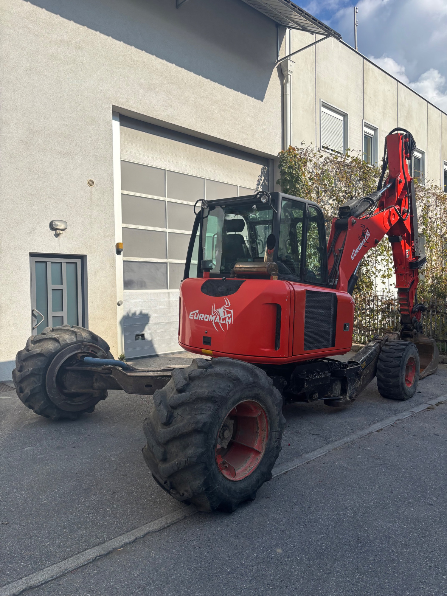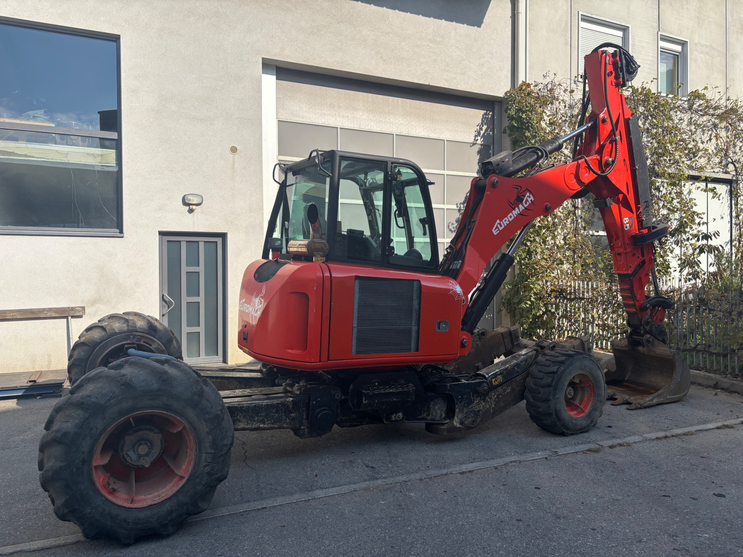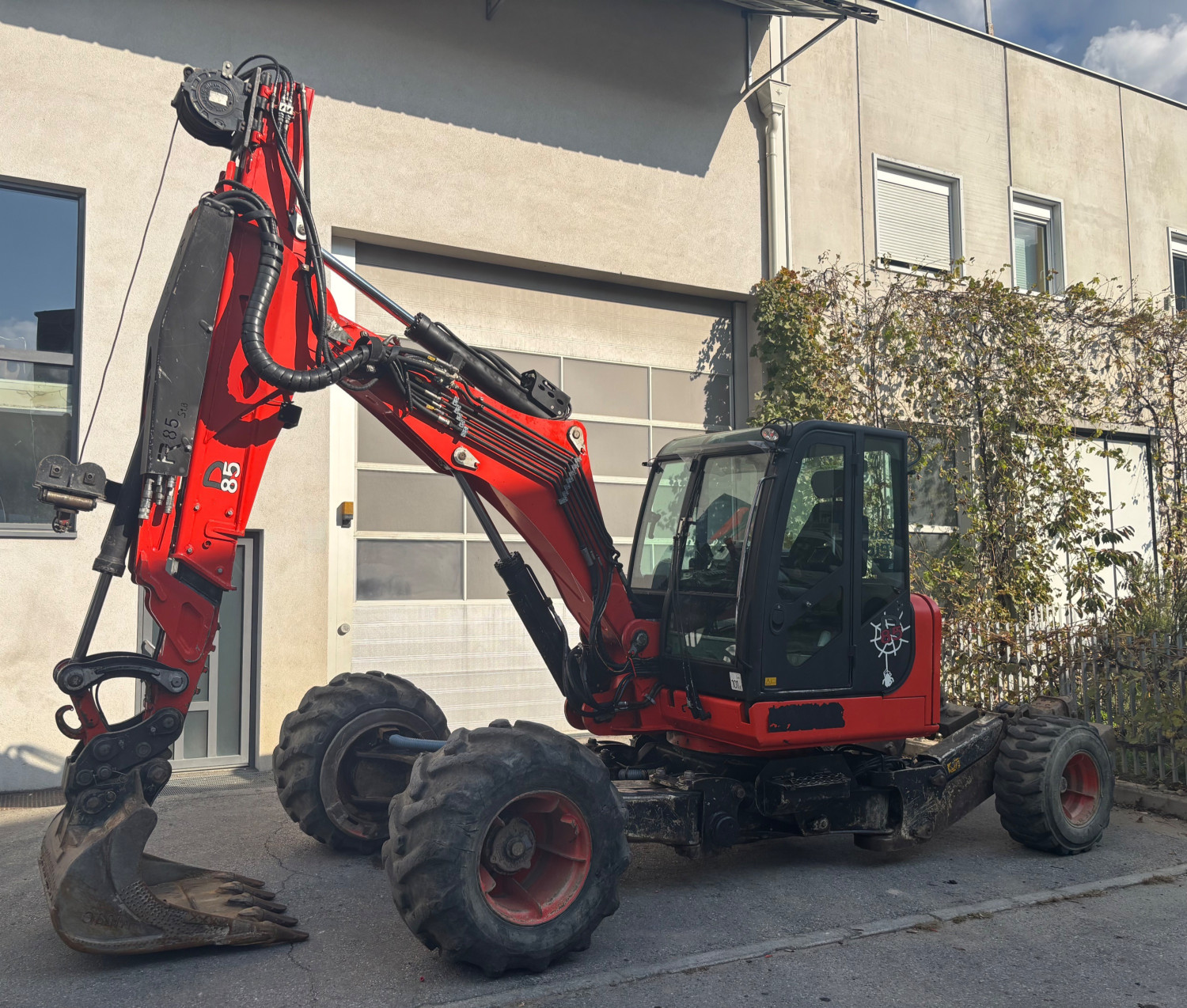 Beschreibung | Schreitbagger Euromach R85, Kubota Motor, Telefüsse, Hammer- Zangenanlage, Betankungspumpe, Schnellwechsler hydraulisch, 1x Löffel. |
