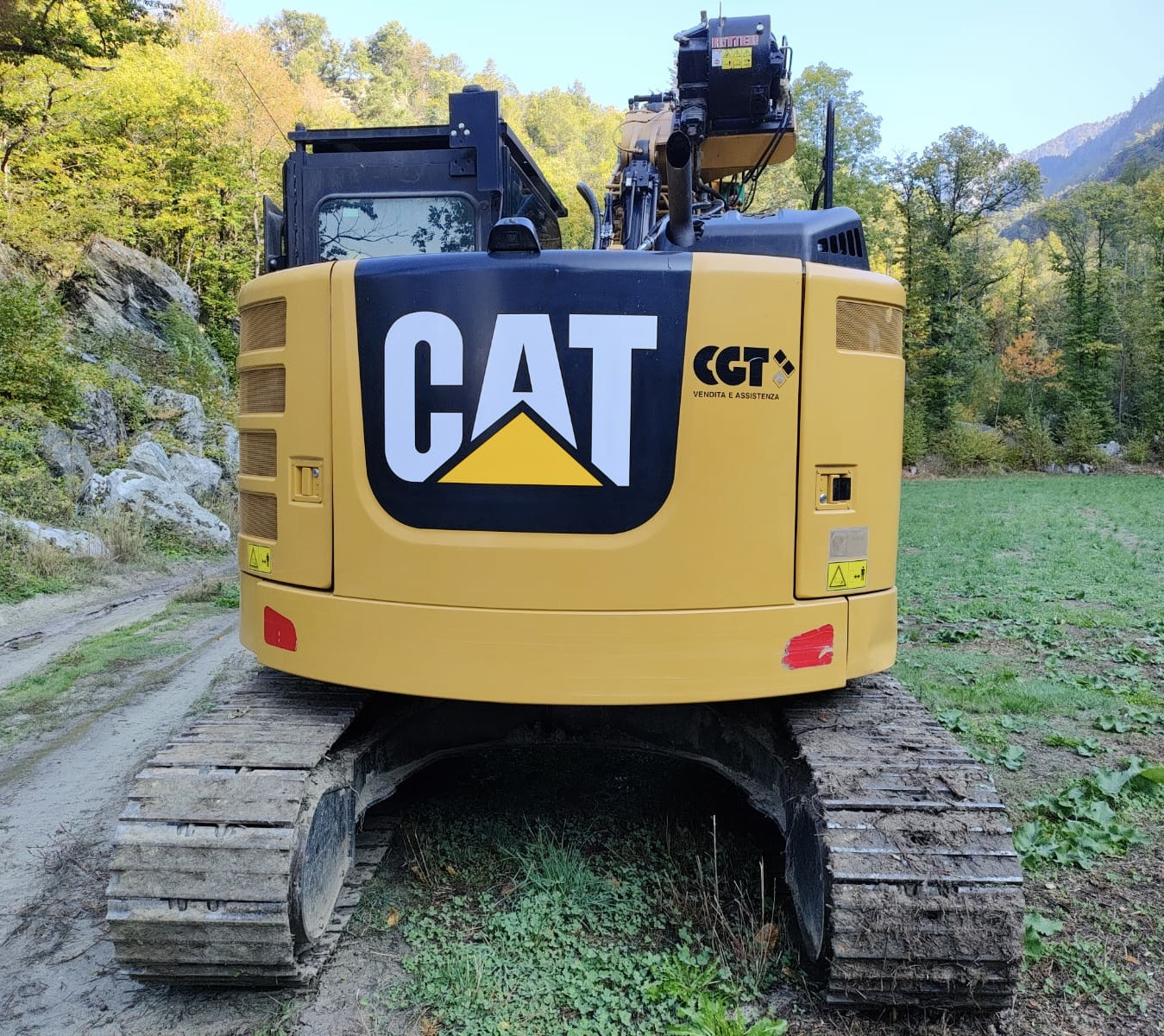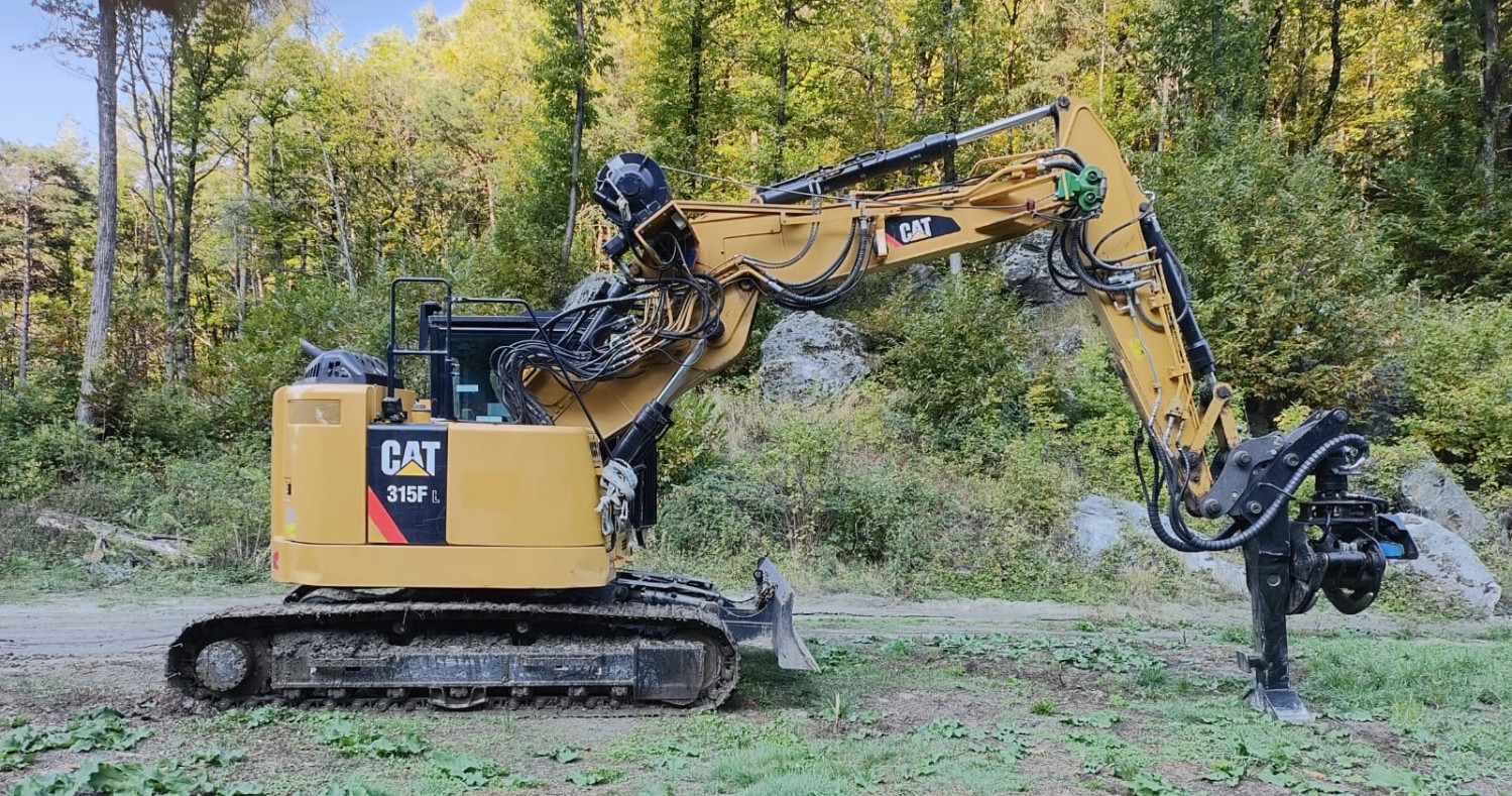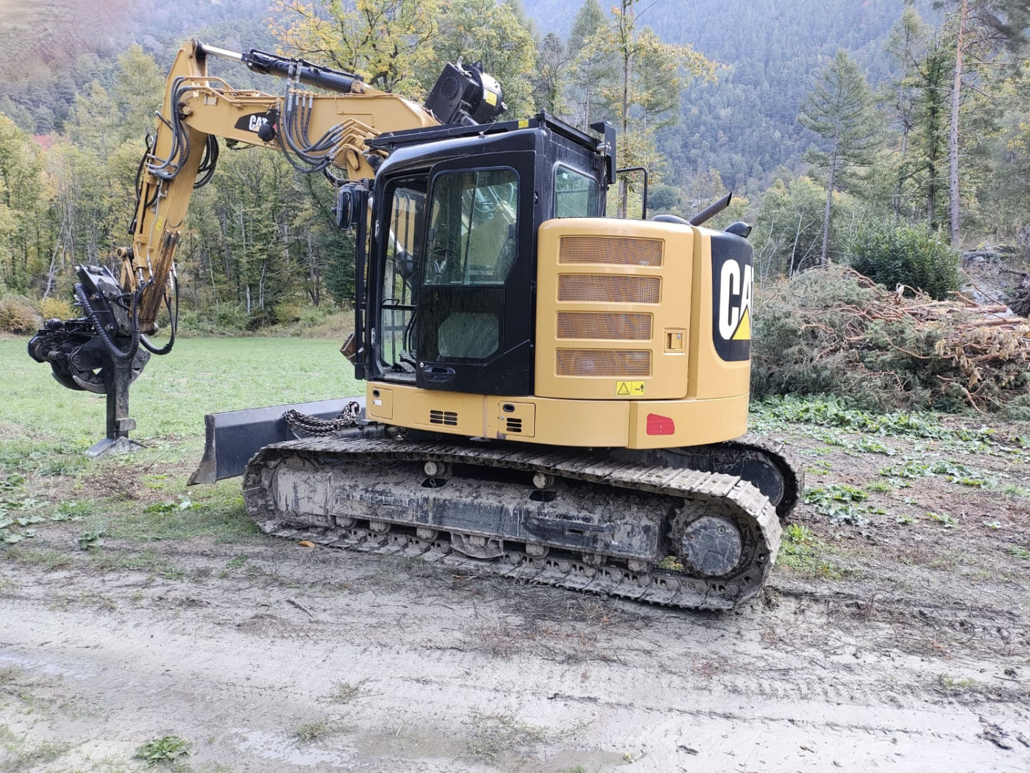Beschreibung | Raupenbagger CAT 315F, Verstellausleger, Breite 2500 mm, Schild, Seilwinde am Arm, Zange mit Motorsäge. |