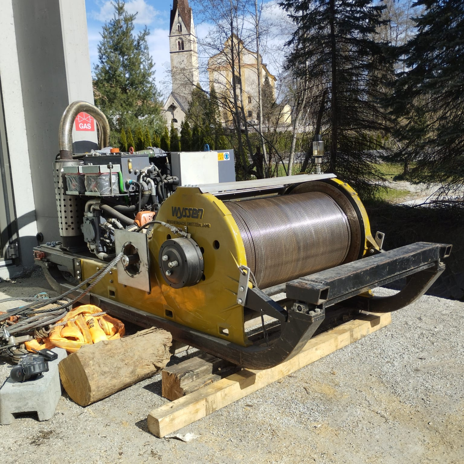 | Beschreibung | Schlittenwinde Wyssen W90, hydraulisch, 6 Zylinder Deutz Motor mit 260 PS, inkl. Windflügelbremse, Seilkapazität 11 mm x Länge ca. 2800 m, Gewicht ca. 2900 kg, Länge 3500 mm x Breite 1550 mm x Höhe 1360 mm. |